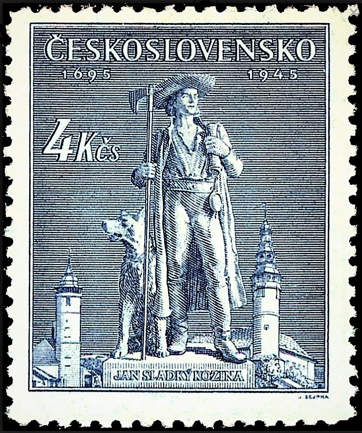 Známka Jan Sladký Kozina, datum vydání 28. 11. 1945, zdroj: Domažlický dějepis