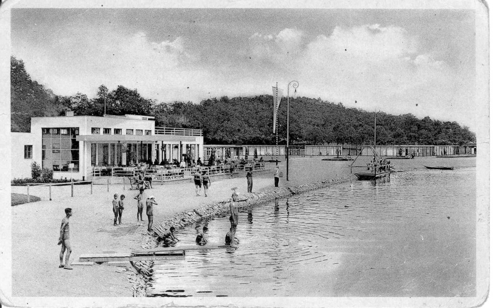 Zdroj: Archiv města Rokycany„Rozloha celého areálu činila 44 080 metrů čtverečních. Vedle pláže stála funkcionalistická budova restaurace, kterou architekt F. A. Libra v souladu s dobovými trendy, navrhl jako variaci na architekturu zaoceánských lodí. Restaurace otevřena 10. června 1934. Z ní se okamžitě stalo populární společenské centrum. Kromě restaurace dotvářely stavební charakter koupaliště i půlkruhový objekt šaten, dřevěné kabinky a vstupní brána. Elegance koupaliště vedla k dobovému označení „Rokycanská Itálie“. O víkendech sem mířili rekreanti nejen z Rokycanska, ale i z Plzně a od Prahy,“ přiblížila Hana Hrachová, vedoucí Okresního archivu Rokycany.