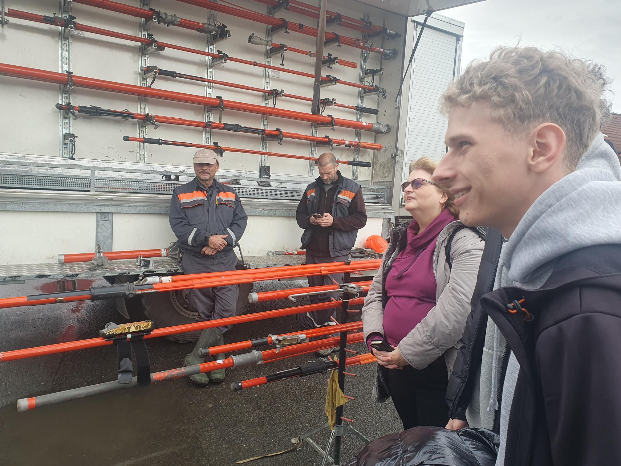 K vidění toho bylo ale v Křimicích daleko více – mj. servisní vůz, montážní plošina, ukázky specialistů na vzdušné vedení 110 kv distribuční soustavy (pozn: velmi vysoké napětí zajišťuje přepravu elektrické energie na velké vzdálenosti a propojuje části energetické sítě), co k tomu potřebují, jaké využívají komponenty. Nebo kabelové soubory vysokého i nízkého napětí. vnitřní i venkovní koncovky či ukázky, jak se dělají spojky na kabelu vysokého napětí.
