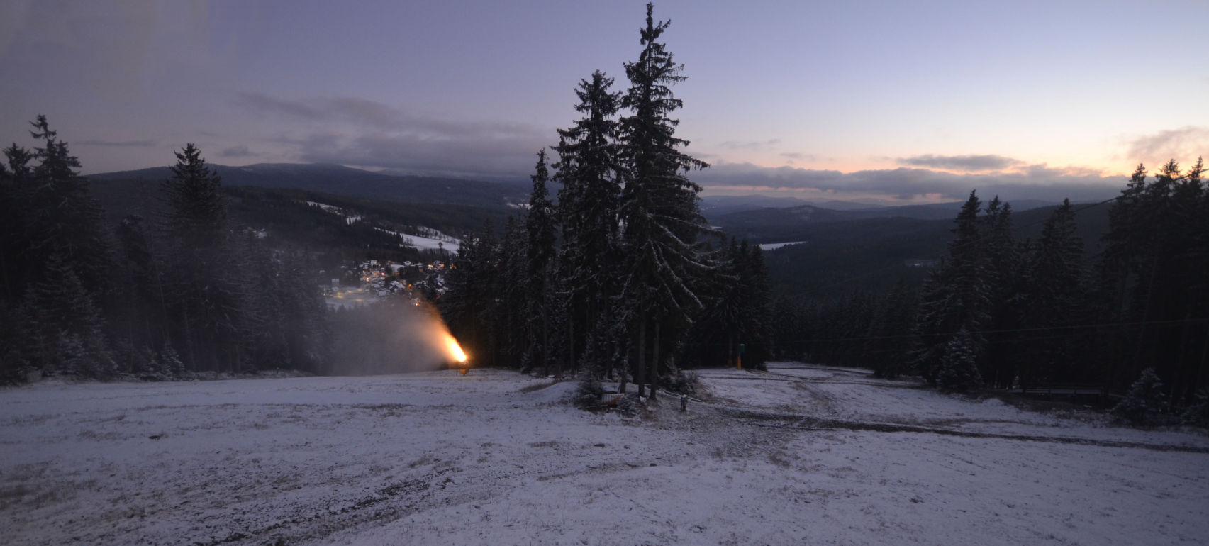 Sněžná děla začala v úterý chrlit technický sníh v šumavském lyžařském areálu Ski&Bike Špičák. Jde o první takto brzké zasněžování od roku 2018, kdy klimatické podmínky umožnily spuštění systému. Zatím není jasné, kdy se zde začne lyžovat.