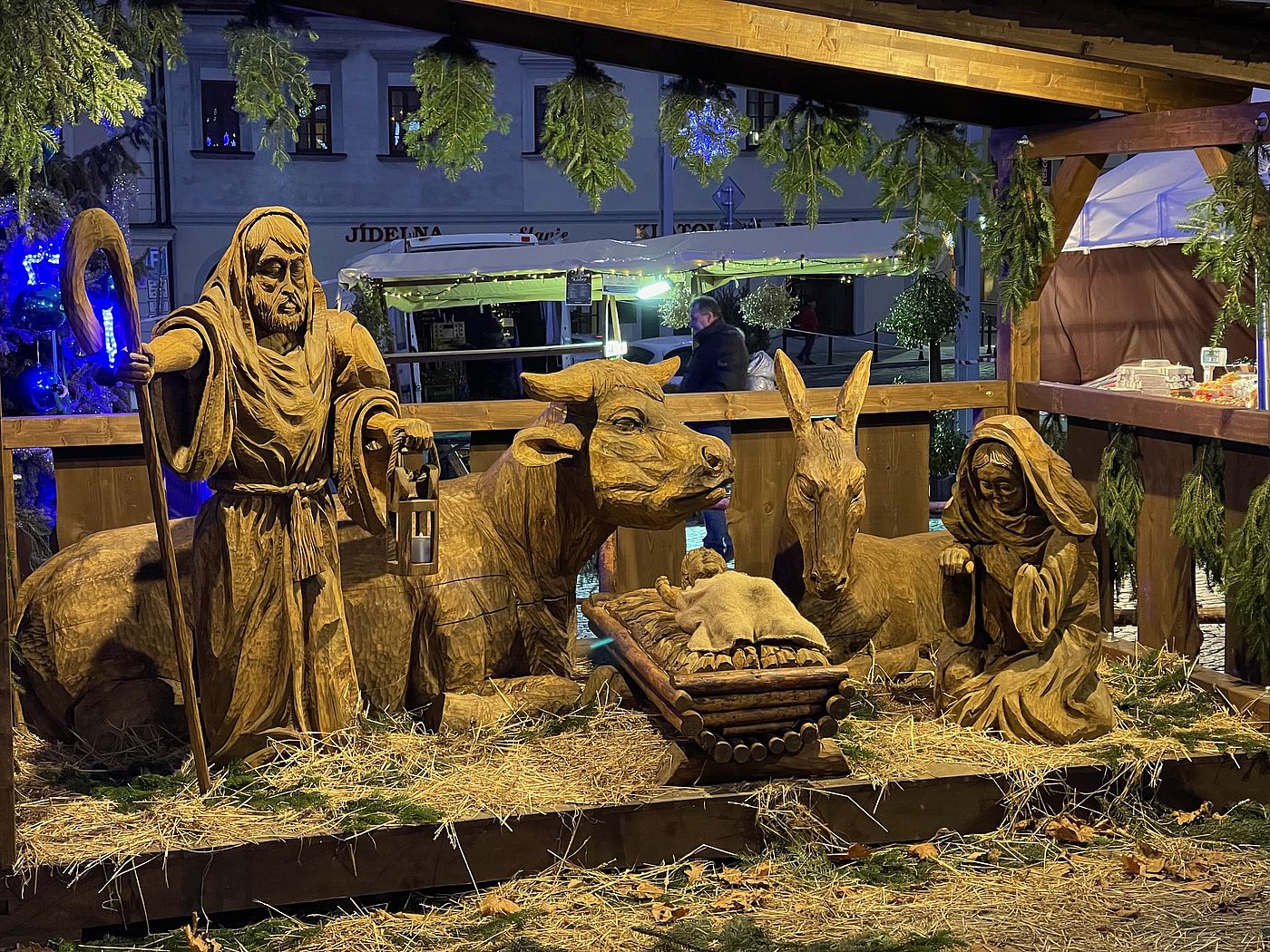 Chybět nebude na náměstí ani tradiční vyřezávaný betlém. Opět bude letos rozšířen o novou postavu, která se představí až při slavnostní premiéře. Celé náměstí pak orámují dřevěné a rovněž nazdobené stánky pro vánoční trhy. Všechno musí být totiž hotové do slavnostního rozsvícení vánočního stromečku, které je letos naplánované na pátek 28. listopadu. Lidé se mohou těšit i na bohatý doprovodný program.