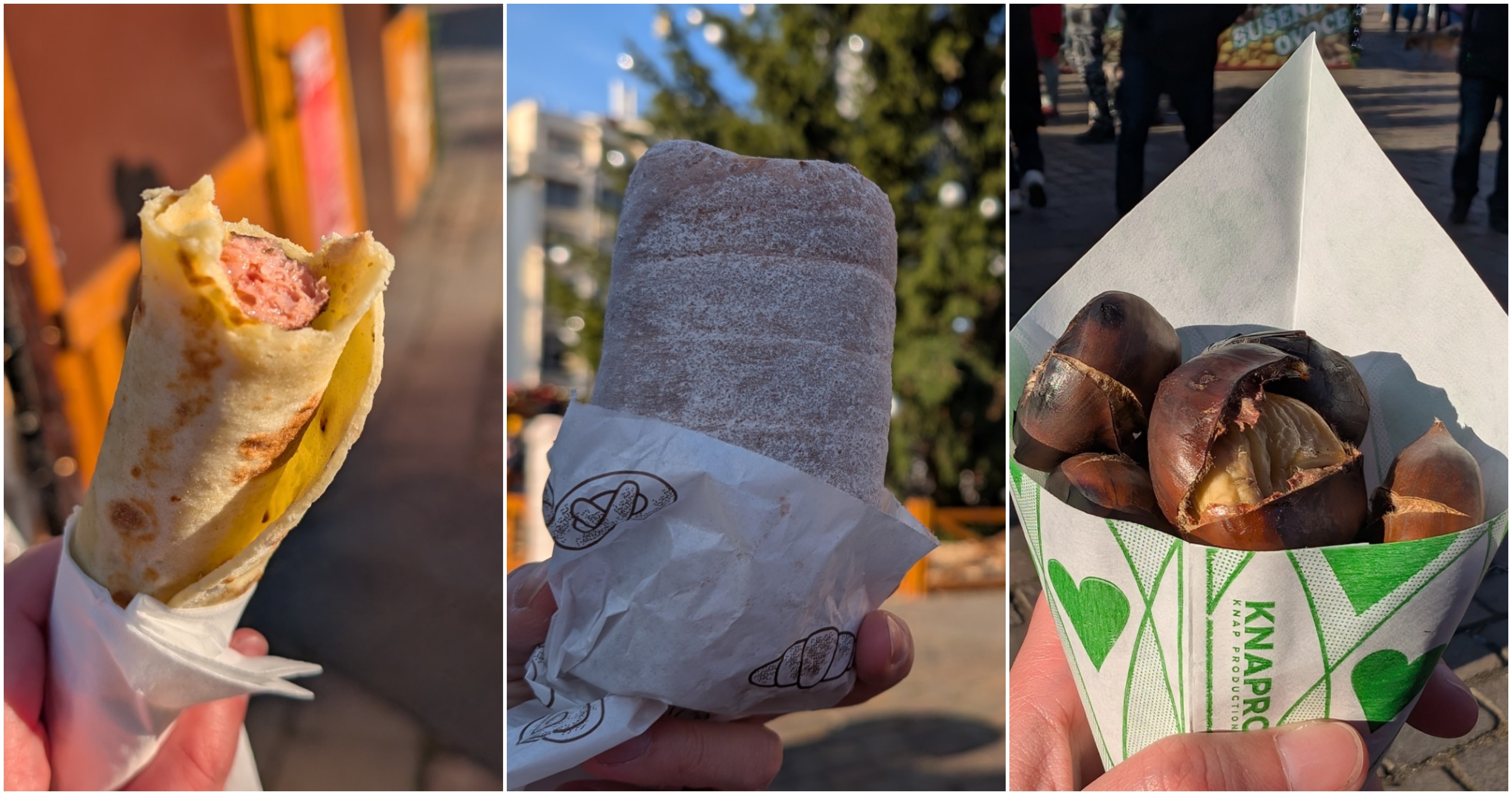 Na náměstí bylo vidět hodně lidí, kteří si dávali klobásy za 120 korun nebo čertíky v lokši za 80. Děti si hodně nosily ovoce na špejli, které stojí od 90 korun do stovky. Na stovku vyšla i jedna porce pečených kaštanů nebo trdelník, který mají na náměstí hned ve třech stáncích. Kdo je spíš na slané, ten si může dát langoše za 120 korun či belgické hranolky, jejichž cena se pohybuje od 130 korun až po 190. K mání jsou tam i palačinky v různých variancích naslano i nasladko od 120 do 160 korun.