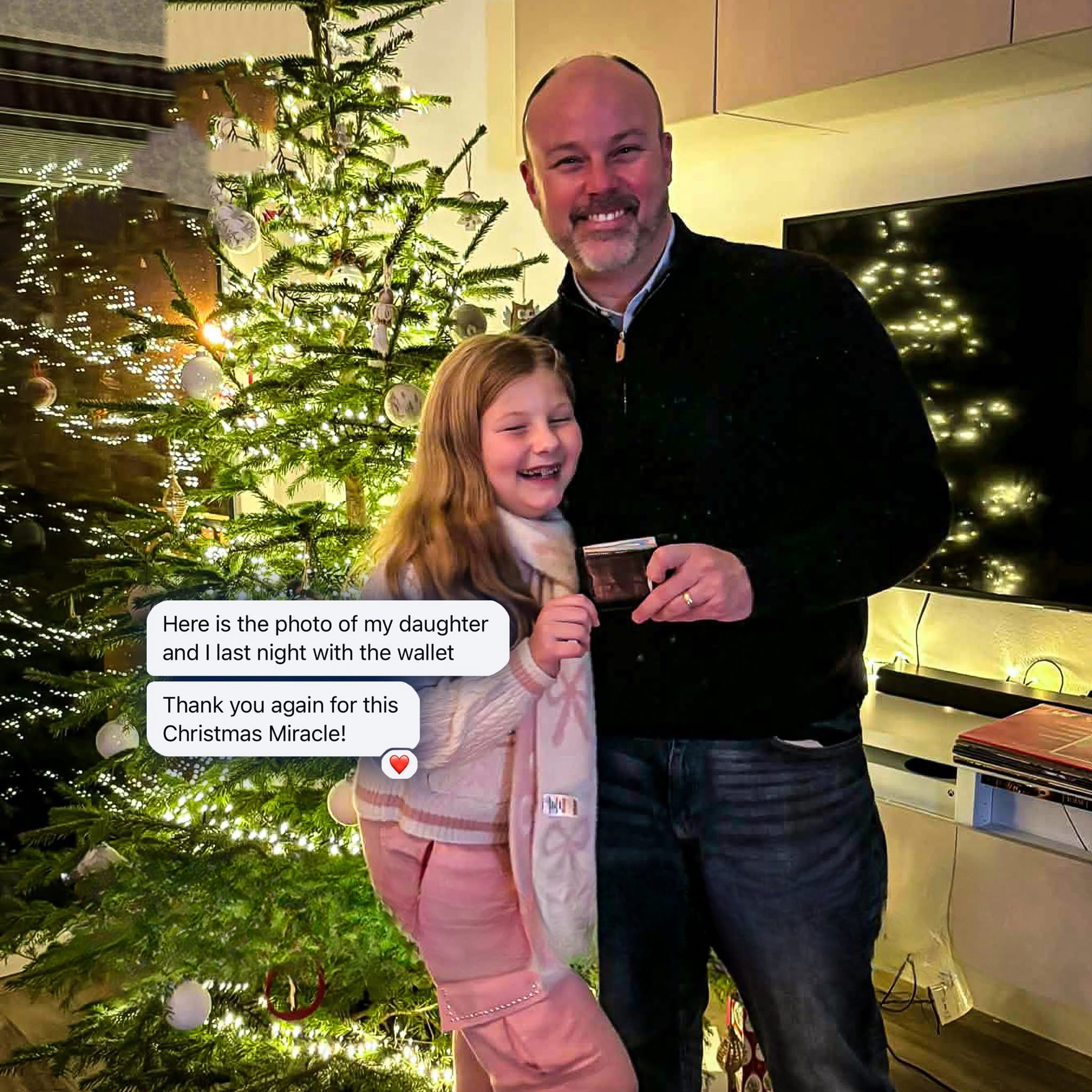 Šťastný cizinec nakonec zveřejnil i fotografii se svou dcerou a nalezenou peněženkou a všem zúčastněným poslal poděkování za vánoční zázrak.