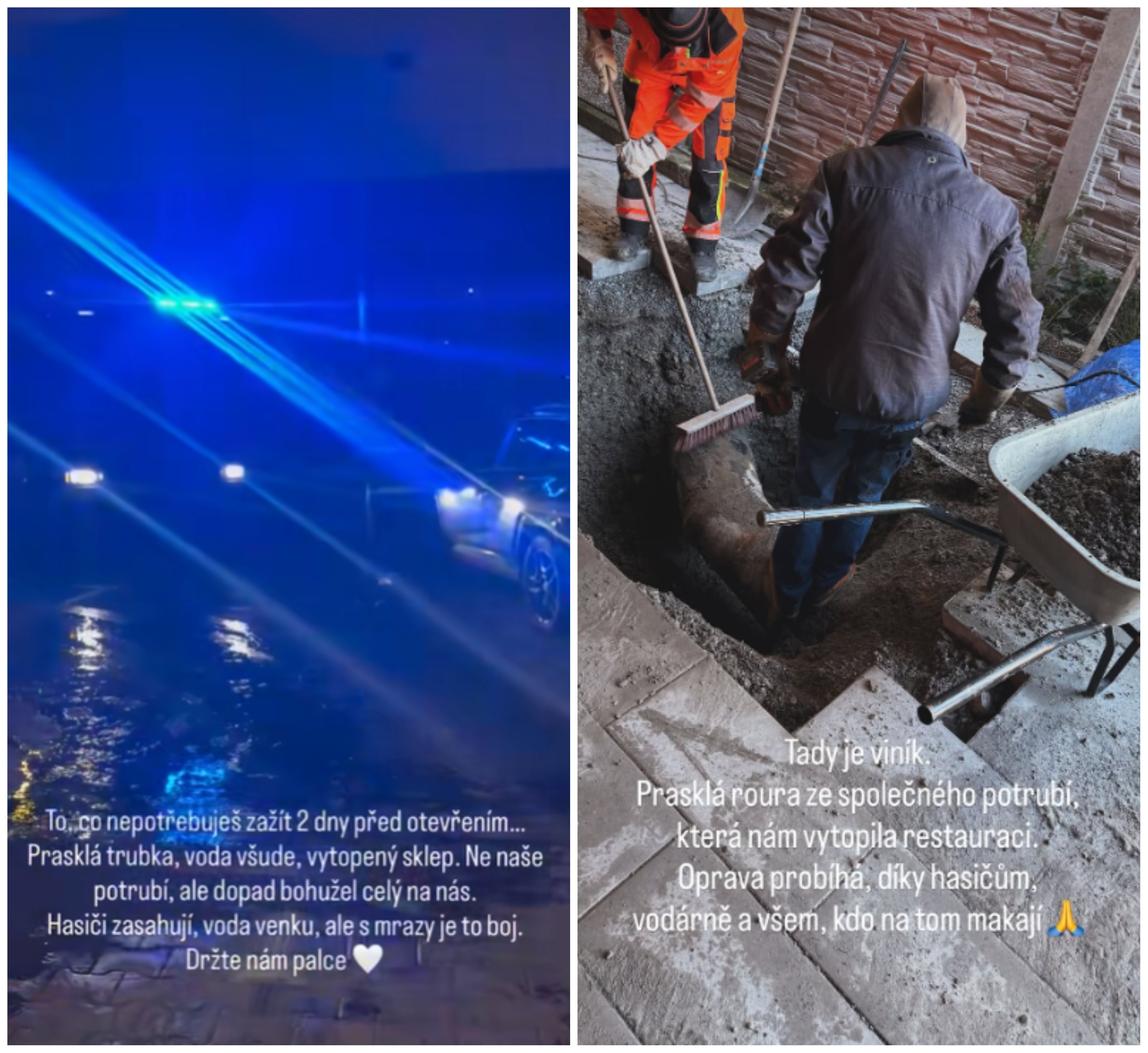 Komplikace to znamená i například pro Pivnici u Feřtů. „To, co nepotřebuješ zažít dva dny před otevřením. Prasklá trubka, voda všude, vytopený sklep. Hasiči zasahují, ale s mrazy je to boj. A tady je viník. Prasklá roura ze společného potrubí, která nám vytopila restauraci,“ informovali provozovatelé pivnice prostřednictvím stories na Facebooku.