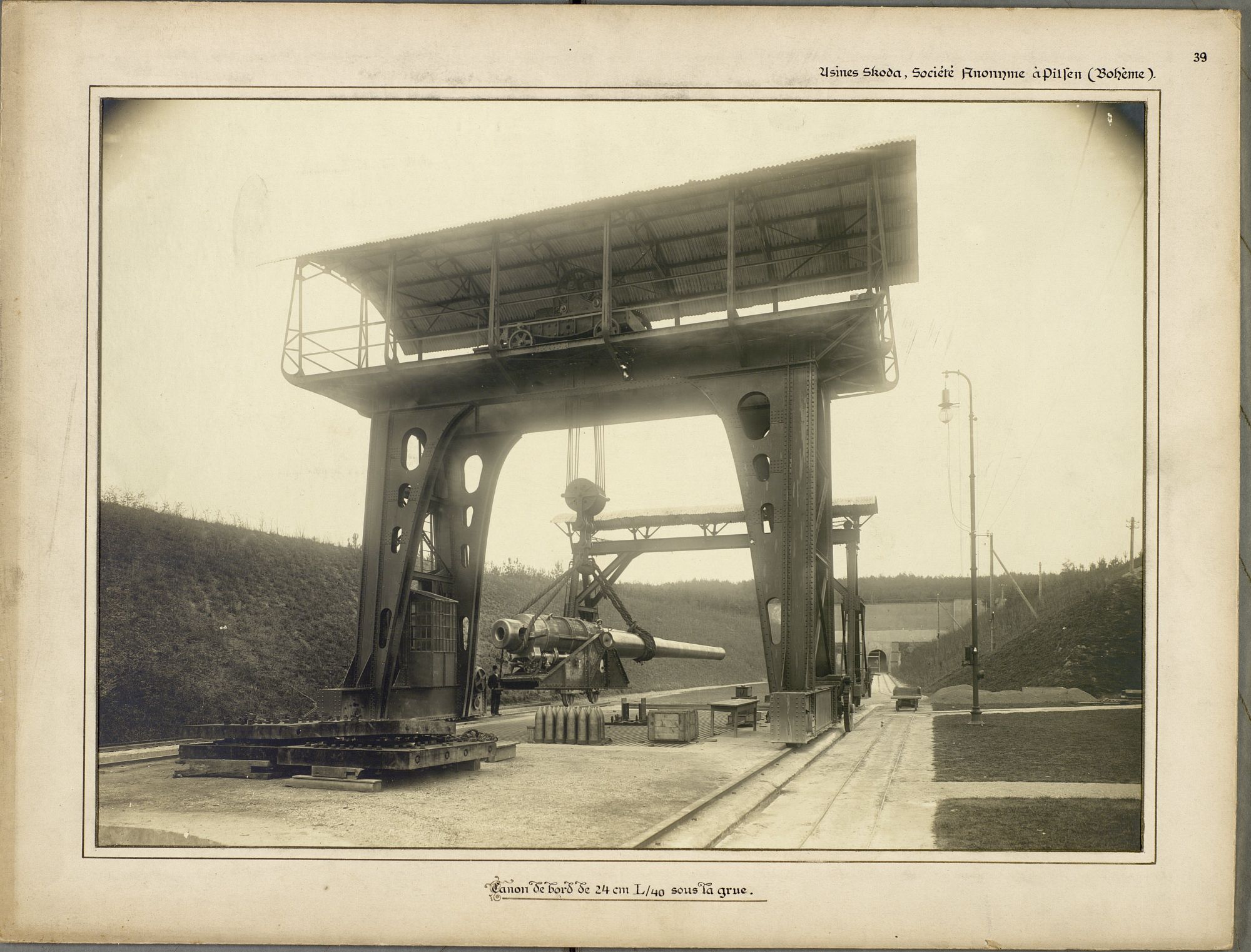 Lodní kanón 24 cm L/40 K97, zavěšený na portálovém jeřábu v Bolevci (1903)