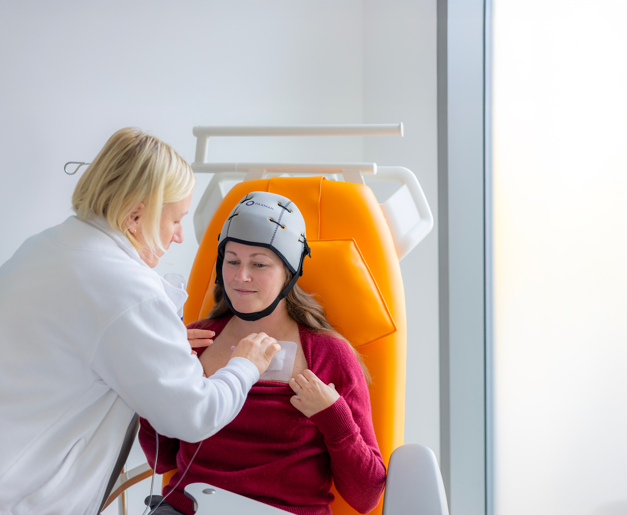 Ztráta vlasů patří mezi časté vedlejší účinky některých typů chemoterapie. Pro mnohé ženy je to jeden z nejtěžších momentů léčby – okamžik, kdy se onemocnění stává navenek viditelným. Dnes však existuje metoda, která může tento dopad výrazně zmírnit. Protonové centrum nabízí pacientkám možnost použití chladicí čepice Paxman, která během chemoterapie snižuje prokrvení pokožky hlavy, a tím i množství cytostatika, které se dostane k vlasovým kořínkům. Výsledek? Vlasy ve většině případů pacientkám zůstanou.
