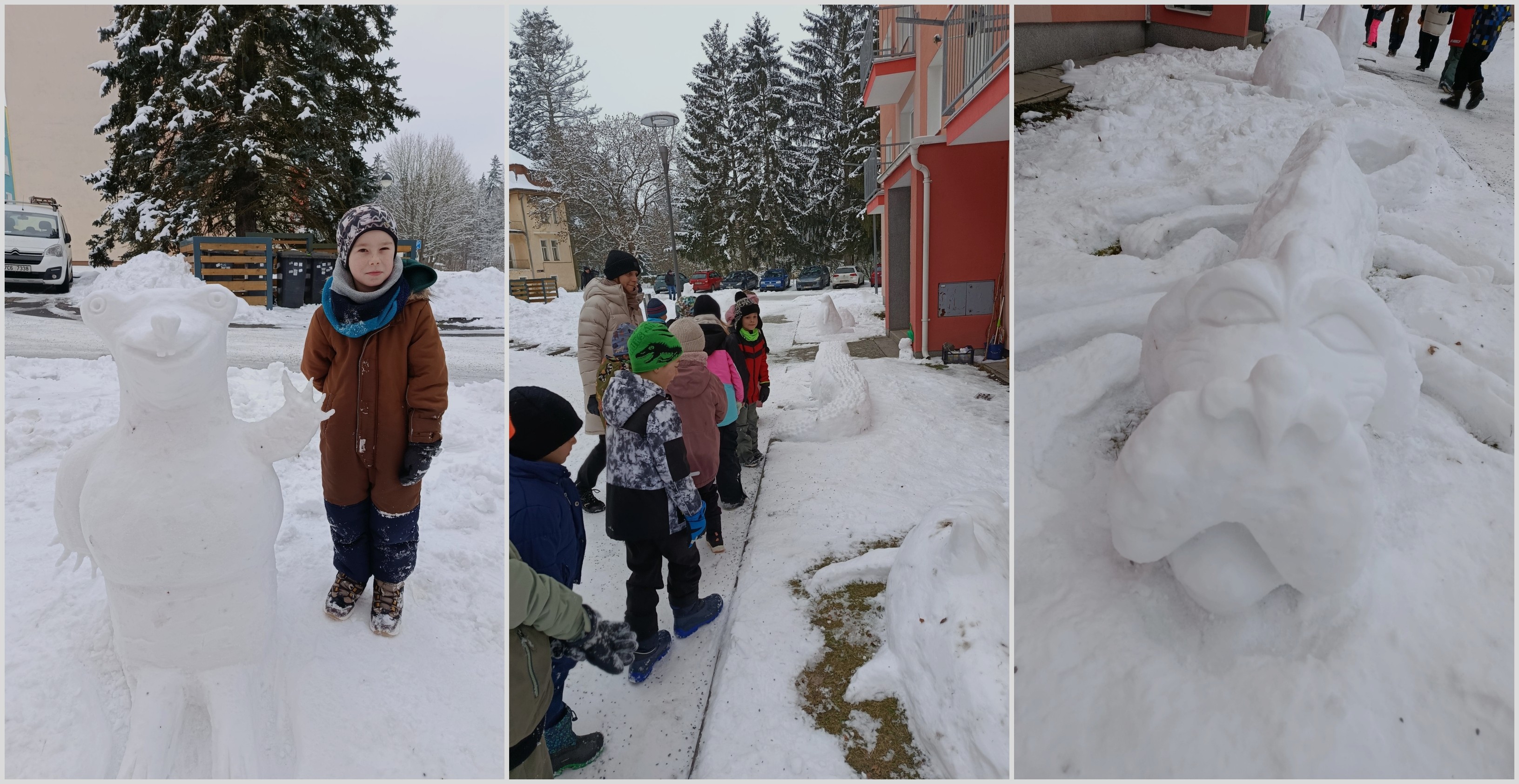 Naopak v Konstantinových Lázních nemuseli autory sněhové zoo hledat vůbec. Za nápadem stojí Karin Langmajerová s kamarádkou Monikou Hampapovou. Společně se svými dětmi vytvořily v Zahradní ulici jakousi minizoo. K vidění jsou tam lední medvědi, tuňák, podivuhodný pavouk nebo postavička ukecaného lenochoda Sida z Doby ledové.