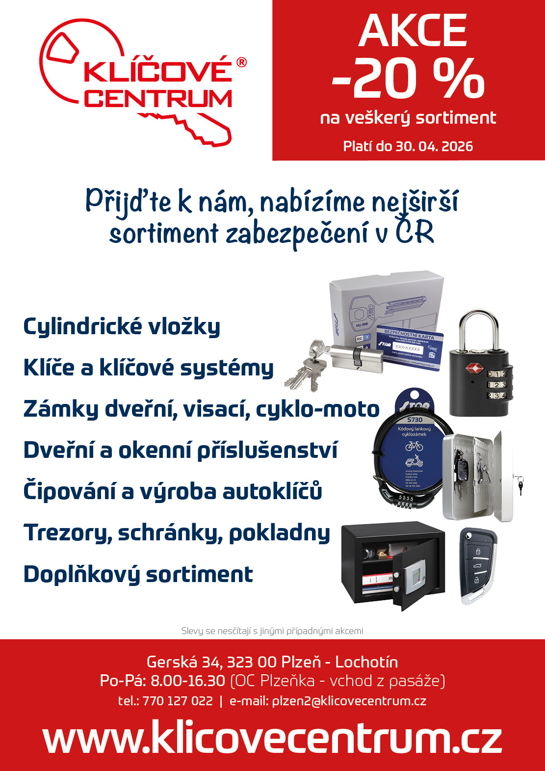 Od 2. března 2026 rozšiřuje společnost H&B Group své působení v Plzni o novou prodejnu a showroom v obchodním centru Plzeňka v městské části Lochotín–Bolevec. Nové Klíčové centrum se nachází na adrese Gerská 34, Plzeň 1. U příležitosti otevření jsou připraveny zaváděcí ceny se slevou 20 % na celý sortiment.