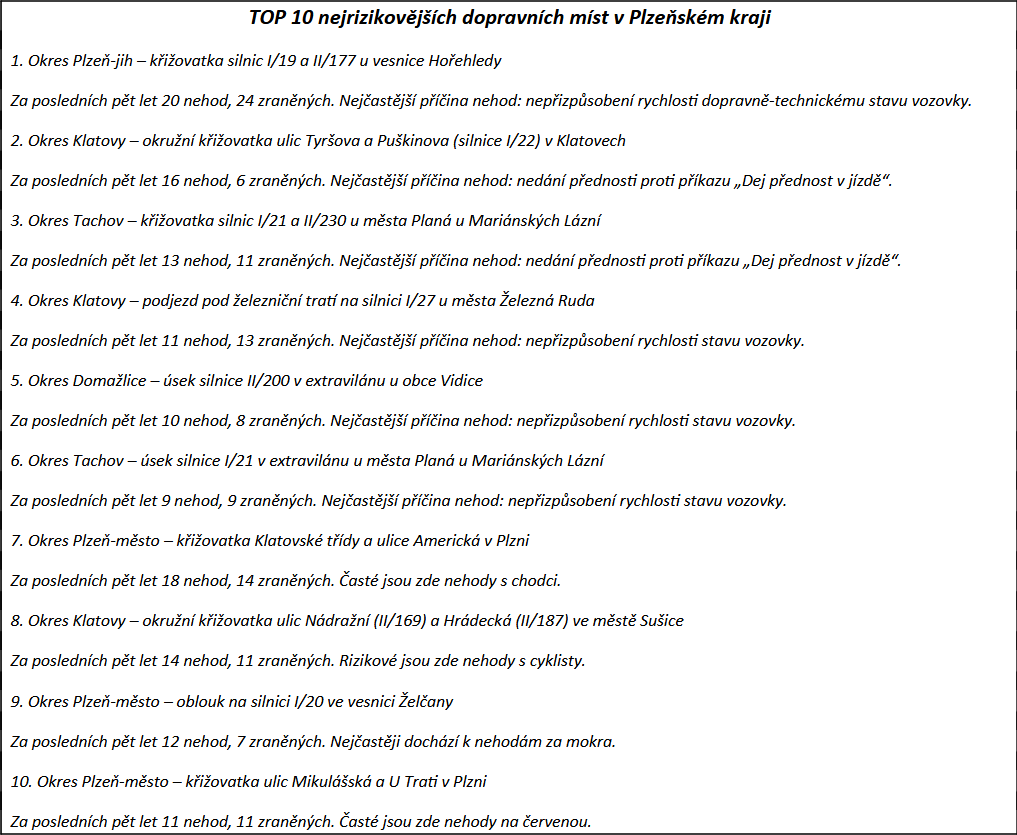 Známe desítku nejrizikovějších míst na silnicích v Plzeňském kraji