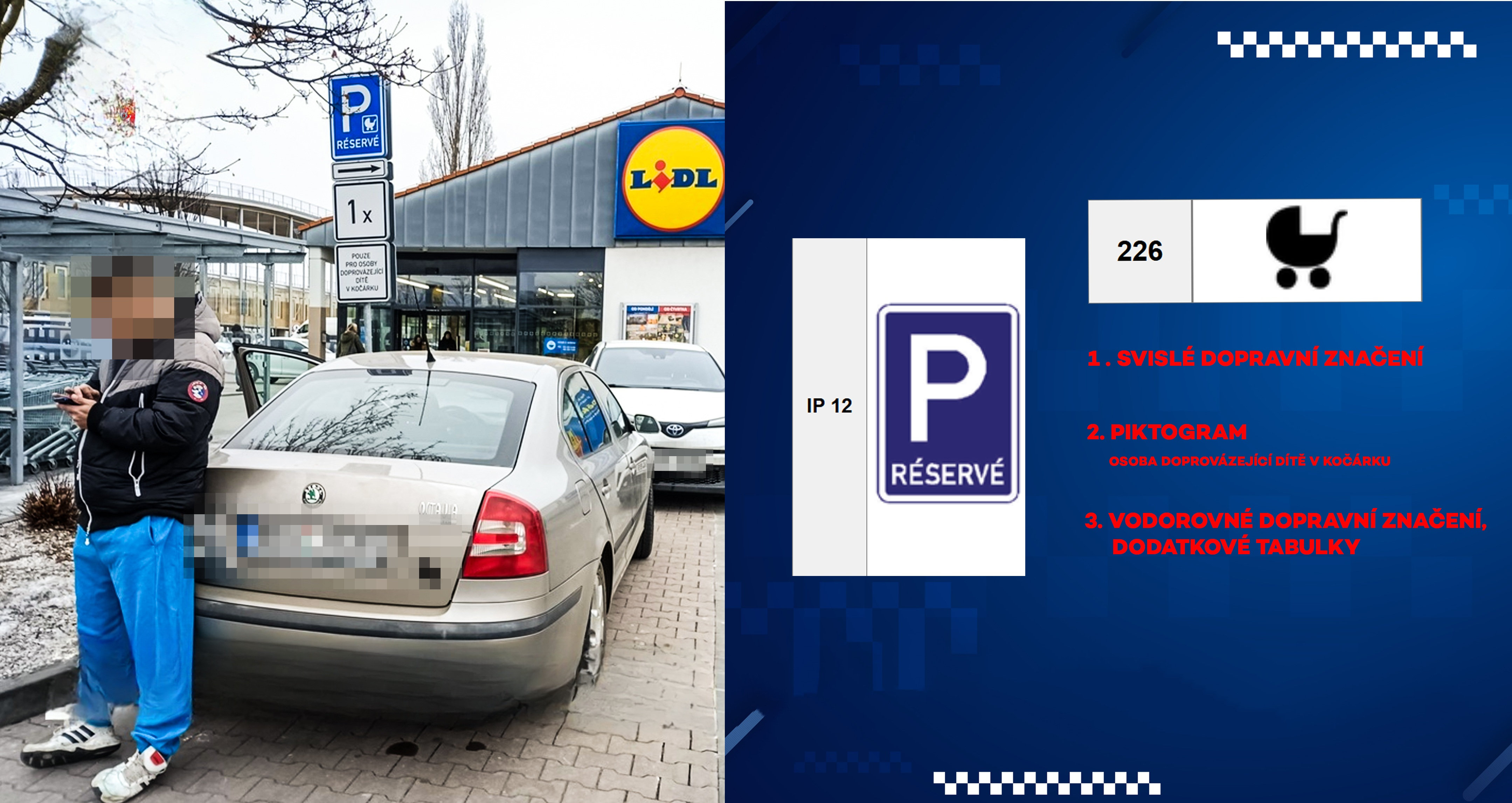 Aby šlo o vyhrazené parkoviště podle zákona, musí být místo označeno svislou dopravní značkou IP 12 (Vyhrazené parkoviště) doplněnou symbolem 226 (osoba s dítětem v kočárku). Pokud je místo označeno pouze vodorovným značením nebo piktogramem na vozovce bez svislé značky, nejde o vyhrazené parkoviště ve smyslu zákona o silničním provozu.