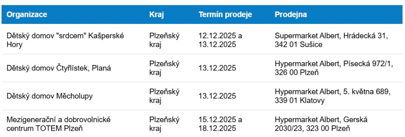 Malí tvůrci z dětských domovů se proměnili v prodavače. V Obchůdcích s Albertem nabízí ozdoby a dárky, které poslední měsíce vyráběli, aby potěšili zákazníky. V Plzeňském kraji otevřou své stánky ještě čtyři organizace. Výrobky děti prodávají i online. Akci organizuje Nadační fond Albert.